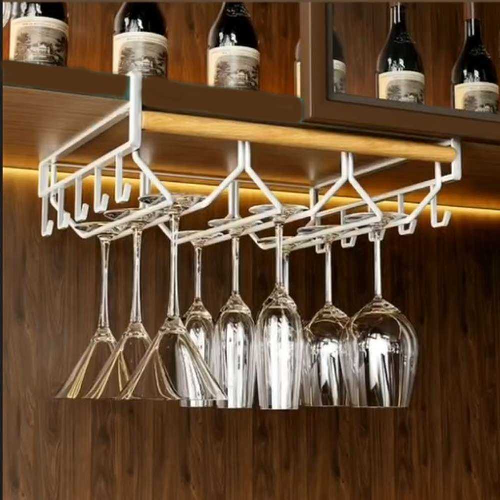 Maximize storage space with this under shelf organiser. You can attach this in kitchen cupboards, shelves, bar cabinets and pantry . Hang wine glasses for easy access and save space. It also has hooks to hang other stuff.