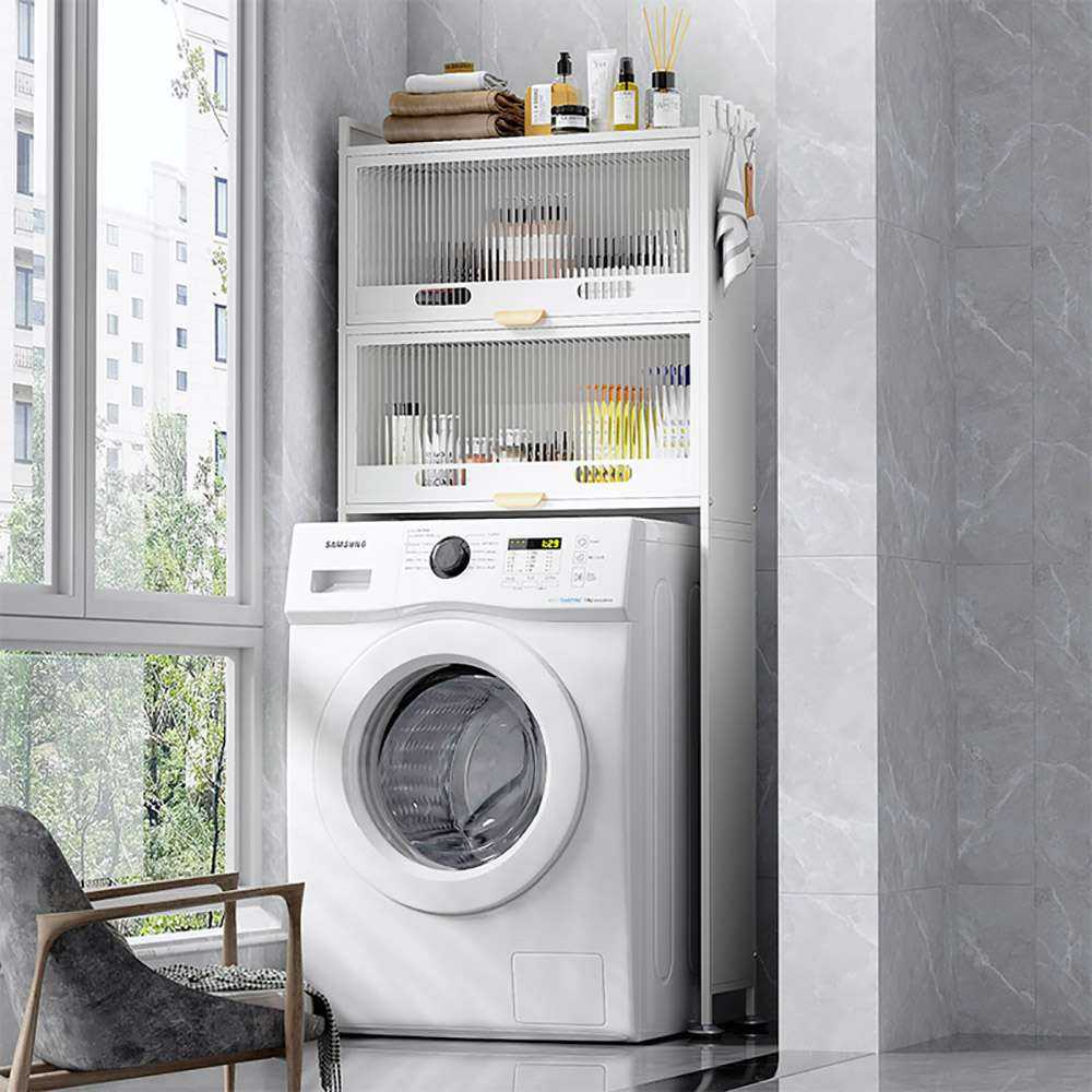 Looking to utilize the space above your washing machine? Your search ends here. A simple solution to transform the otherwise unused space above your washing machine into practical storage where you can keep things like detergents and cleaning supplies out of sight behind doors.